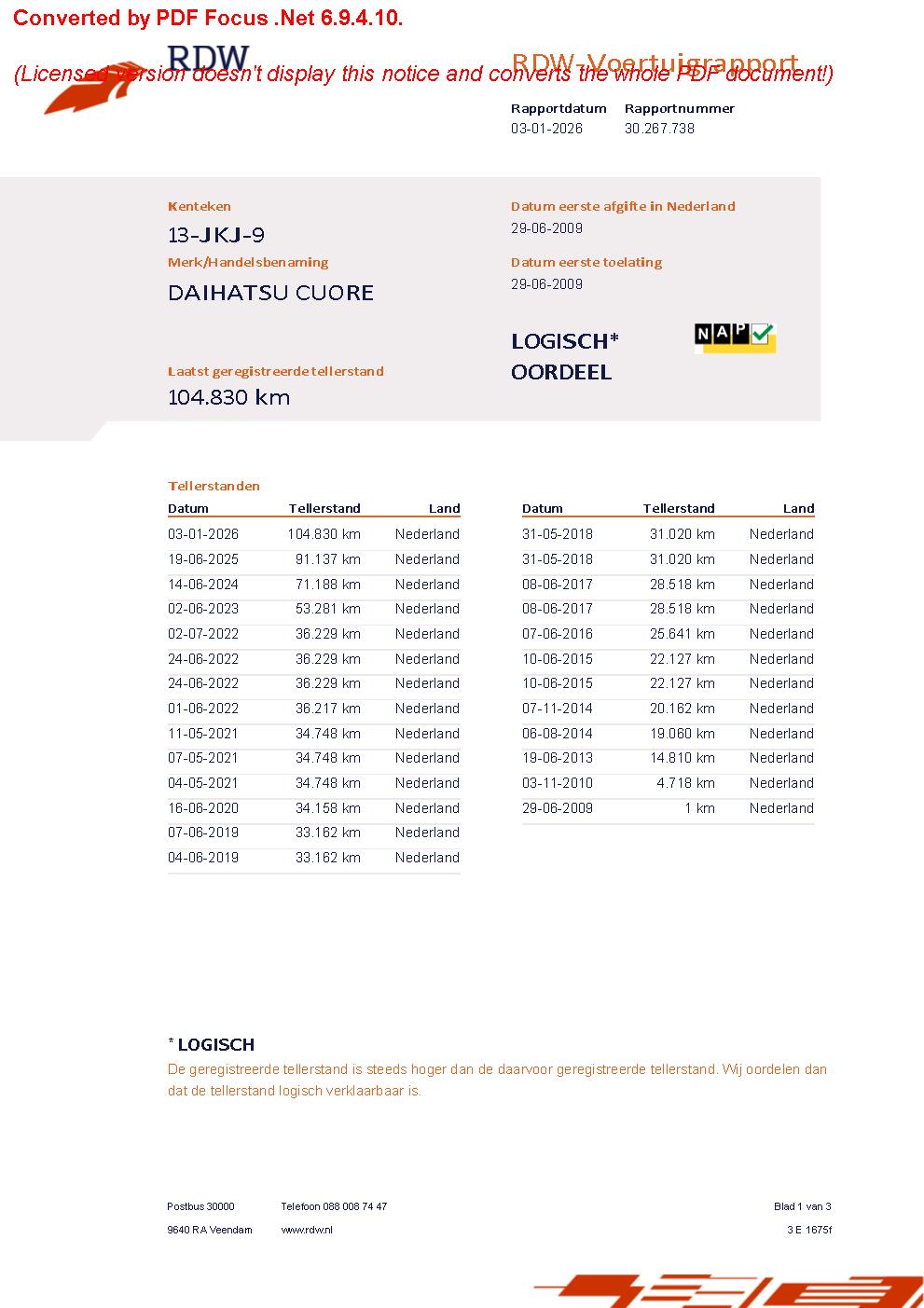 Kilometerstand 104.831 km